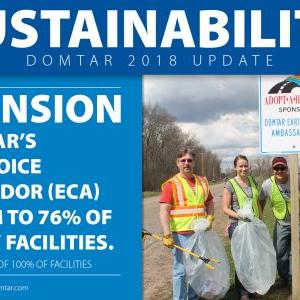 - We have expanded our EarthChoice Ambassador (ECA) program to 76% of company facilities. As of 2018, we have established ECA teams in 26 locations across four countries, bringing us closer to our goal of having 100% of our facilities participating in our ECA program by 2020.