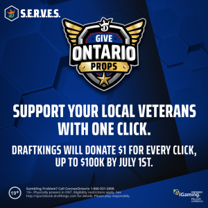 Customers can give “props” to Ontario and support True Patriot Love by just one click of a button. Every time someone gives Ontario props, DraftKings will be donating $1 to True Patriot Love. The goal is to reach $100,000 by Canada Day.