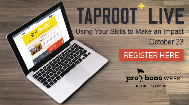 Take this opportunity to join the Taproot+ community during a free Pro Bono Week webinar on October 23 where our staff will guide volunteers through: