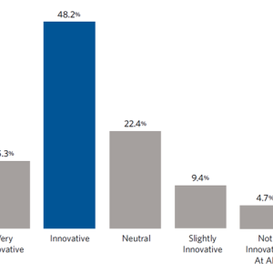 Taken a bit further, nearly half of respondents reported separately that they consider their utility’s approach as innovative in building out infrastructure, while an additional 15 percent rated themselves a step higher at “very innovative” (Figure 2).