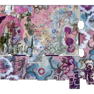Heather Wilkinson, of Utah State University, was named second runner-up with her design, Sonoma. Sonoma was created to bring attention to the landscape of the American Southwest. The light blues and purples prompt a visual setting sun over the Colorado River’s flowing course and waterfalls. The rugged rust and flax colored fibers perfectly match the panorama one would revel in when visiting the magical Grand Canyon. Earth tones marry with the patterns used, grounding the energy of the end user when this carpet is encountered. The organic and cascading pattern becomes full of substance and elegant grit. Wilkinson was also awarded a trip to attend HD Expo.
