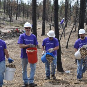As it had in the past following similar wildfires, FedEx supported community environmental recovery efforts through its EarthSmart Outreach program, providing critical resources in the form of volunteers and funds to aid local NGO’s restoration efforts. Over the course of 2013-2014 EarthSmart Outreach efforts, seventy-one volunteers donated more than 350 hours restoring the area ravaged by the Black Forest wildfire, planting grass seed and creating log erosion barriers in collaboration with the Rocky Mountain Field Institute (RMFI). Randy Smith, IT manager at FedEx Services in Colorado Springs, has coordinated employee volunteer events between FedEx and RMFI for the past four years, including recovery projects following the Waldo Canyon fire. “We’ve just fallen in love with RMFI,” Smith said. “What they’re doing in our communities is huge and being able to support RMFI through FedEx feels incredible. Every team member who comes out here to do this is a happier person.”