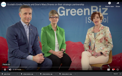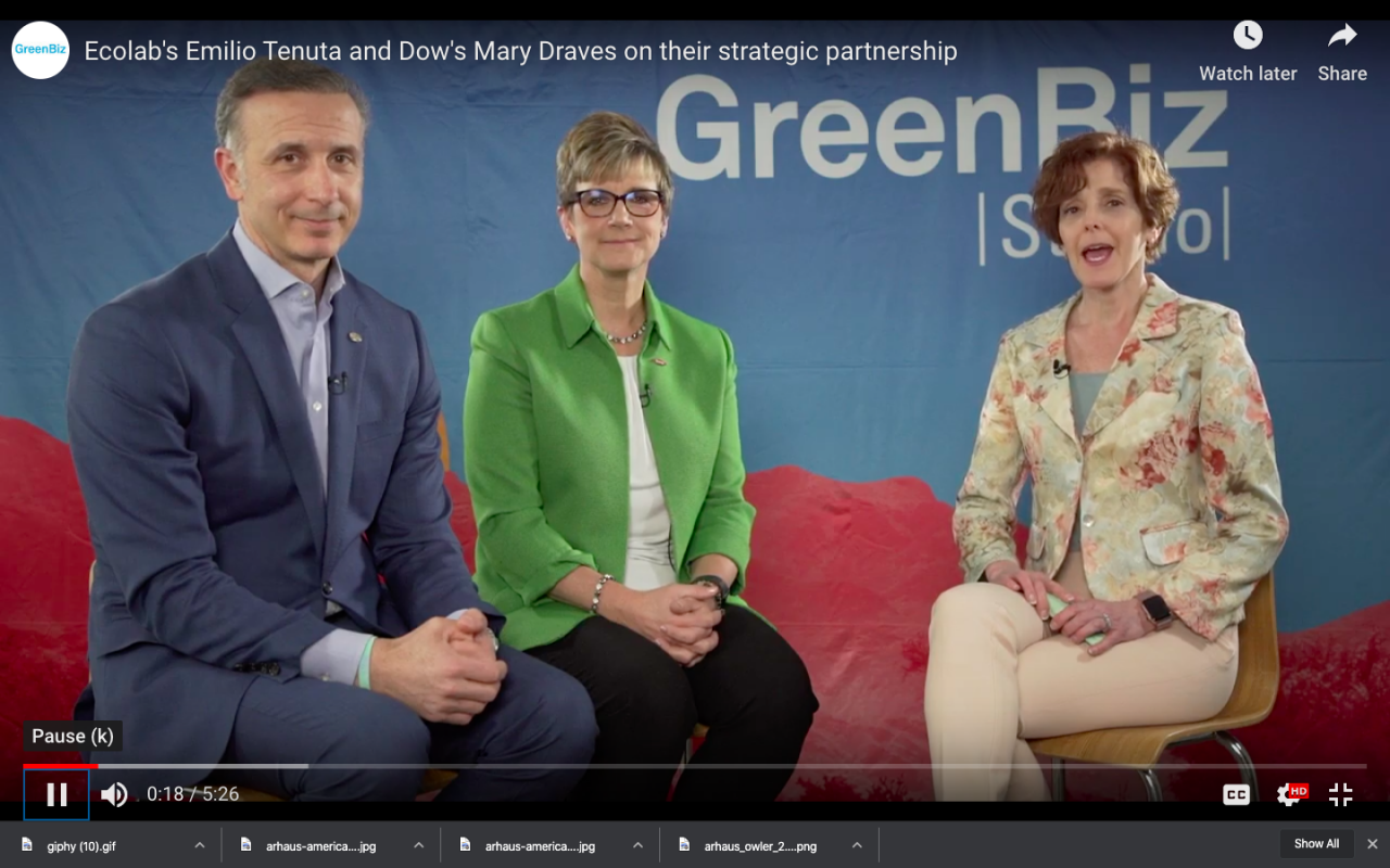 Emilio Tenuta, Ecolab's Senior Vice President of Corporate Sustainability, and Mary Draves, Dow's Chief Sustainability Officer and Vice President of Environment, Health and Safety, joined GreenBiz Editorial Director at GreenBiz Studio to discuss their partnership.