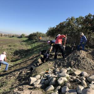 SCE avian manager Kara Donohue, who worked with the owls while in graduate school, offered to lend a hand. She brought a group of SCE environmental staff volunteers to build the burrows and help remove non-native vegetation. SCE also provided a mini excavator and SCE excavator operator Randy Oseguera and spotter Jason Carver to help dig the trenches needed for the burrows.
