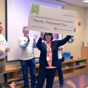A grant check was presented to Cane Run Elementary School in the amount of $20,000 due to their participation in Yum! Brands', parent company of KFC, Taco Bell, and Pizza Hut, Hunger to Hope Global Volunteerism initiative.