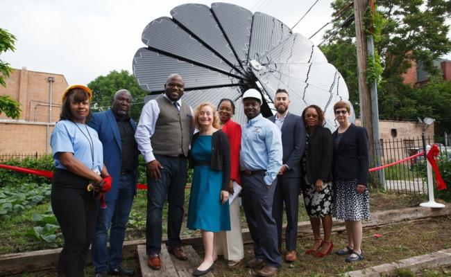 Through an ongoing collaboration with Mohawk Group, Groundswell recently worked with Chicago-based nonprofit Elevate Energy – a fellow Citi Foundation Progress Maker -- to install a SmartFlower solar system in a community garden in South Chicago’s Bronzeville neighborhood.