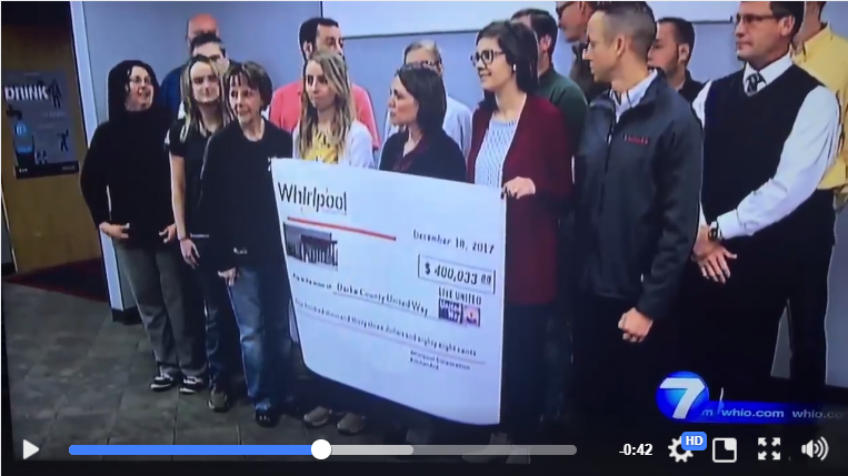 Whirlpool Corporation employees at the KitchenAid Plant in Greenville, Ohio donated more than $400,000 to United Way agencies in the area.