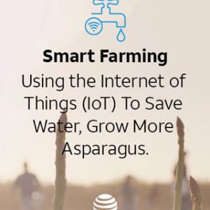 That’s why Devine Organics teamed up with WaterBit and AT&T. WaterBit installed small, solar-powered sensors across the asparagus fields. These sensors collect information on soil moisture and other field conditions. They require no maintenance and are placed under the foliage, so they don’t interfere with field work and harvests. Data from the sensors is sent to a communications hub that can be thousands of feet away. The hub then uses AT&T Internet of Things (IoT) technology to send highly secure data over the AT&T LTE network to the WaterBit app. There, the information is analyzed to determine if a section of the field needs more or less water, and the farmer can remotely control irrigation from their smartphone, turning valves on and off.