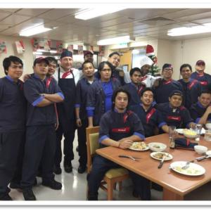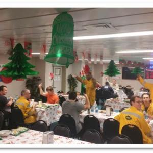 While the average Christmas dinner takes lots of planning and countless store trips, organizing it when you’re 150 miles from shore takes special effort. All food arrives by boat, so weather conditions and loop currents can delay shipments. That is why Sodexo managers begin planning the menu in September so they are sure to have every requisite ingredient. They also get decorations to make the galley look festive. “We always send out pre-lit Christmas trees, tons of ornaments, holiday tablecloths, centerpieces and garlands,” said Hurst.