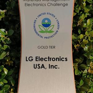 The EPA’s Gold Tier Award recognizes LG’s significant contributions to the SMM Electronics Challenge goals by collecting a substantial amount of used electronics for reuse and recycle, sending 100 percent of e-waste to certified third-party recyclers, and publicly sharing detailed information about its electronic management practices.