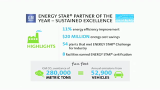 “GM leads the field with its commitment to energy efficiency and demonstrates how all Americans can save energy, save money, and create a healthier environment,” said Bob Perciasepe, acting administrator, U.S. Environmental Protection Agency.