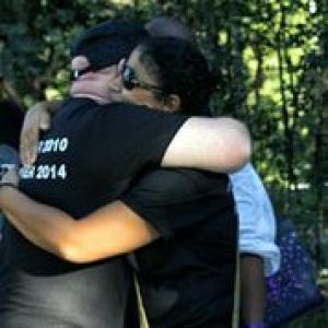 Parc de Martissant, Port-au-Prince, Haiti, February 5, 2014 /3BL Media/ - Hugs and remembrances between locals at the memorial on the 4th anniversary of the 2010 earthquake.