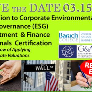 The Why and How of Applying ESG Factors to Corporate Valuations -- A One-Day Professional Educational Seminar Presented by Governance & Accountability Institute, Global Change Associates and hosted by Baruch College/CUNY