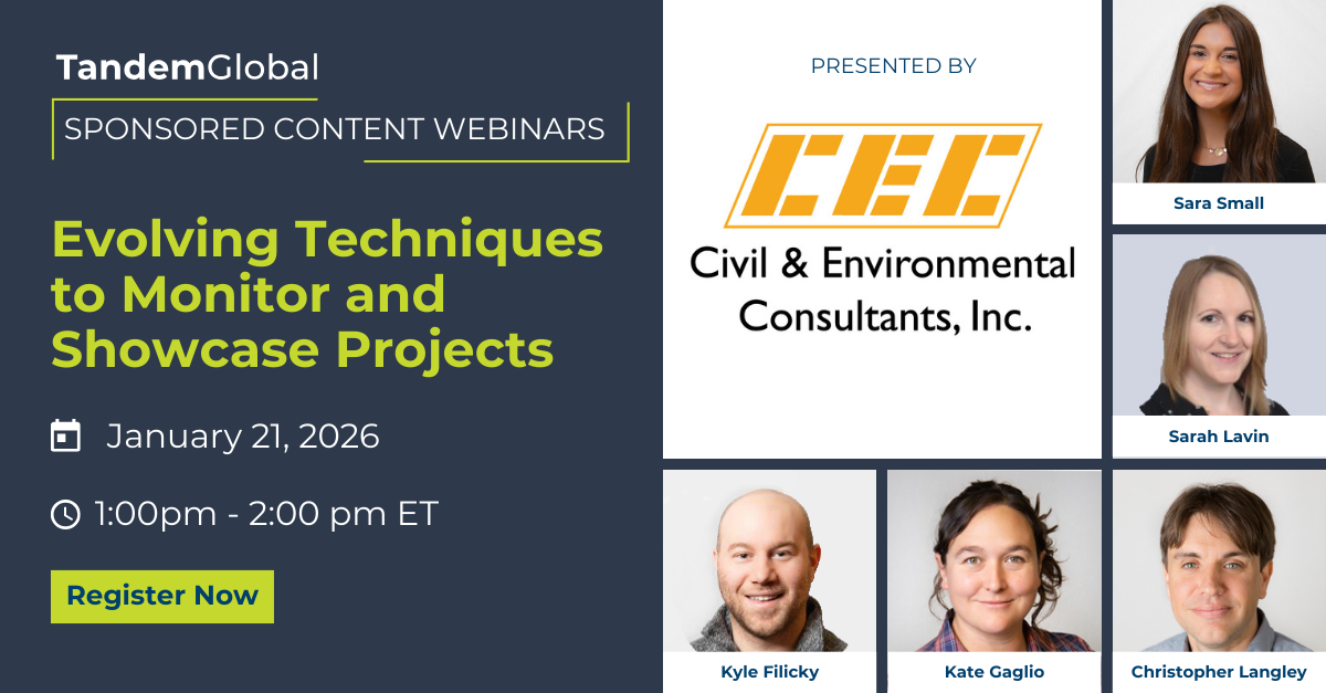 At an online event on January 21, 2026 at 1:00pm ET, specialists from Civil & Environmental Consultants, Inc. (CEC) will share insights into field sampling and site monitoring, demonstrating how both formal and informal practices can be applied based on project goals. They will discuss where traditional methods still add value, particularly on smaller sites, while highlighting the capabilities of electronic data collection, GIS applications, and modern data management systems.