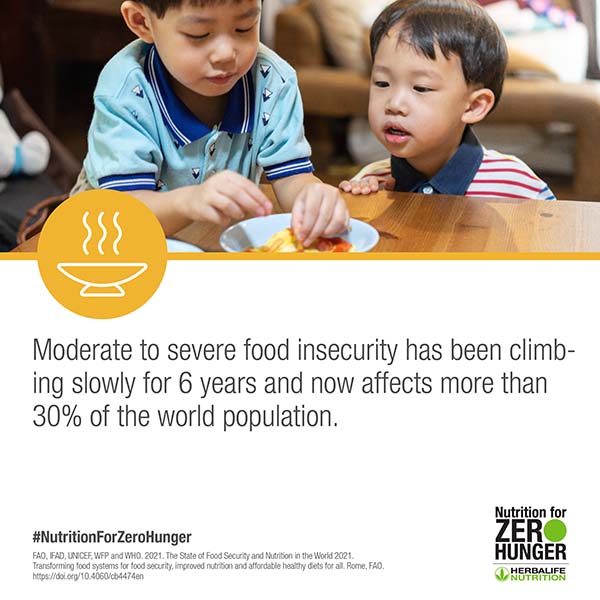 This World Food Day, Saturday, October 16, our global community will be sharing facts and information about global hunger and why we need to address this critical issue from every angle. Join the conversation by posting on social media using #NutritionforZeroHunger and #WorldFoodDay. Follow us @Herbalife on Facebook, Instagram and Twitter for updates on Nutrition for Zero Hunger to learn more.