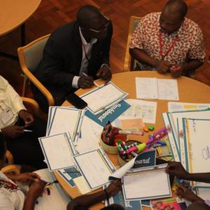 We then facilitated a ‘design lab’ session to understand the potential and intended users. Imagining we were in a large IT company’s design lab working on the next mobile phone, participants rolled up their creative sleeves and were taken through a dashboard design session, identifying what kind of data-access system they wanted. Individual designs were presented to country teams to develop a dashboard that would best serve the projects.