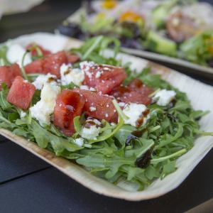 The Chicago Botanic Garden serves the best of summer to visitors at its outdoor beer garden. The heirloom tomato and watermelon salad is comprised of seasonal ingredients, including baby arugula and red veined sorrel, organic watermelon and heirloom tomatoes, locally sourced Hidden Springs Farmstead (Wisconsin) feta, ice wine vinegar, balsamic syrup.