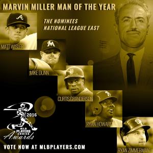 The following players were nominated by their teammates for the 2016 Marvin Miller Man of the Year award: