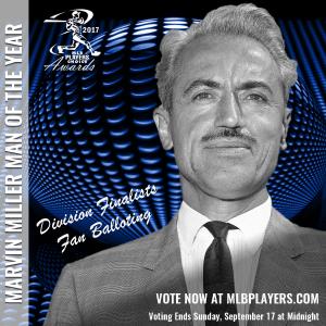 NEW YORK, September 12, 2017 /3BL Media/ - Online balloting at www.MLBPlayers.com opened today so fans can select the six division finalists for the 2017 Marvin Miller Man of the Year award, which goes to the player whose on-field performance and contributions to his community most inspire others to higher levels of achievement.