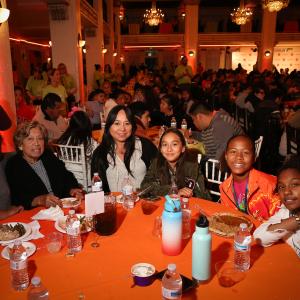 More than 1,000 residents of the Pico Union area - all families - enjoyed a sit-down banquet dinner with an incredibly delicious Thanksgiving menu prepared by Food Inc, our longtime Kids Choice Awards caterer, and served by live action and voice talent from our shows.