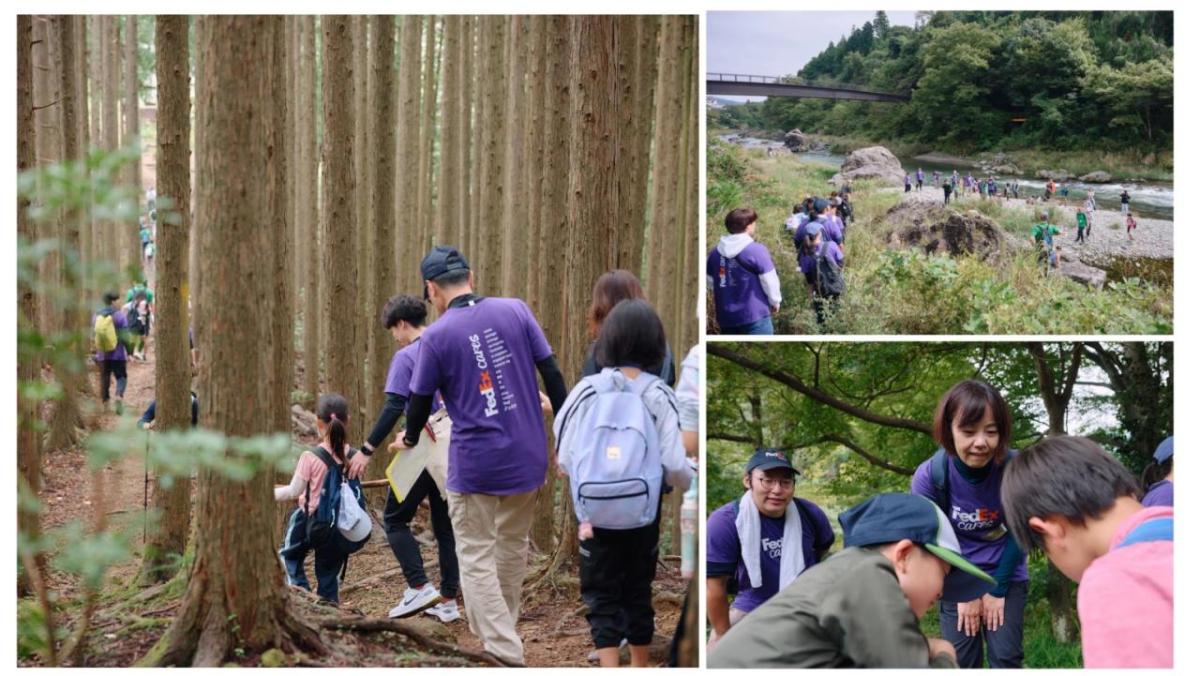 Organized by Mirai no Mori, 13 FedEx volunteers accompanied 28 children on a 4-kilometer hike at Mt. Mitake in western Tokyo. FedEx volunteers served as mentors throughout the day, guiding participants and sharing practical knowledge about protecting the environment. The program gave the children the opportunity to enjoy the outdoors, explore a new environment, and simply have fun—experiences that are just as important as the lessons learned.
