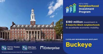 Fifth Third is collaborating on the initiative with Enterprise Community Partners, a national nonprofit that exists to make a good home possible for the millions of families without one. Together, they managed a criteria-based, invitation-only application process to select nine majority-Black neighborhoods that have seen a sustained period of disinvestment. The Buckeye neighborhood in Cleveland was one of the locations selected. Enterprise will provide technical assistance to support each neighborhood in developing and implementing a plan tailored to the unique challenges it faces. Enterprise will then assist with assessing the plan’s effectiveness at improving the economic well-being of residents and small locally owned businesses. Successful outcomes will include investments in small businesses, homeownership and workforce development that promote economic stability and growth.