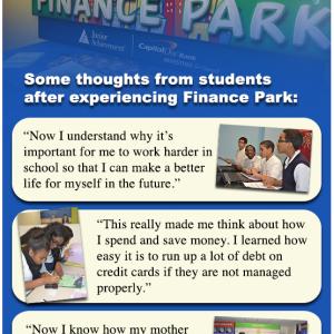 For example, Capital One/Junior Achievement Finance Park™ is an innovative mobile financial education program that teaches the core principles of money management to middle and high school students. Following four weeks of in-class lessons, students enter a mock city where they become “adults for a day,” developing and managing a budget and making real-life financial decisions.