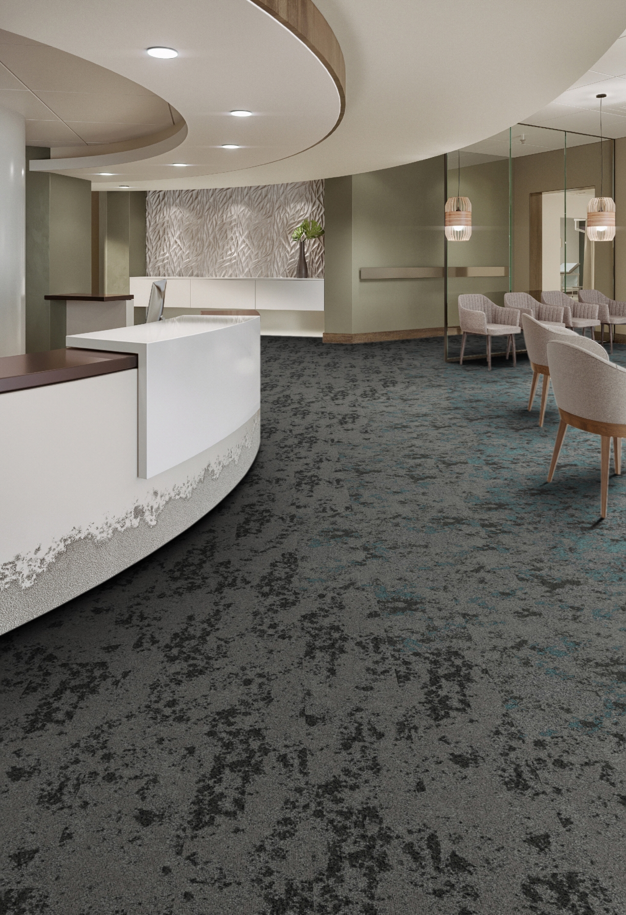 The International Living Future Institute’s Living Product Challenge is a product certification program, advocacy tool and philosophy that defines the most advanced measure of sustainability in product manufacturing today. Designed by Jason F. McLennan, the founder of the Living Product Challenge, in collaboration with Mohawk Group and his team at McLennan Design, Lichen is inspired by the idea of “Nature’s Carpet.” The Red List Free collection is made with Duracolor premium nylon fibers, making it functional for the most demanding healthcare environments because of superior inherent stain- and wear-resistant qualities. The collection’s anchor is a large-scale field of lichen blooms that help create a calm healing environment, changing in shape and form by colorway. Other patterns include a transition style that has less bloom as well as a style that is solely textured ground. The styles can be used together in a wide range of healthcare environments as a system, or separately, depending on the desired configuration of texture and color.