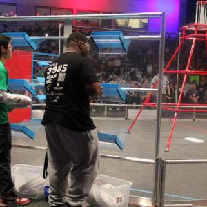 LCCHS and mentors were on the field in Montreal at the Uniprix Stadium from March 14th to March 16th. They rolled through a series of qualification matches that lasted a day and a half, at times playing in matches only 5-10 minutes apart, which gave them little time to recuperate and adjust their bot. Though the speed at which the competition unfolded was dizzying, LCCHS and Sonic Howl stayed at the top of their game throughout. They zipped through qualifications without trouble, up to the round where alliances were formed. As one of the top performers, they were selected to join forces with the second strongest team of qualifications, as well as a third team, at whose side they would compete for the final stages of the competition.