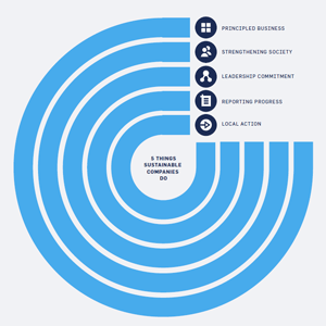Corporate sustainability is imperative for business today – essential to long-term corporate success and for ensuring that markets deliver value across society. To be sustainable, companies must operate responsibly in alignment with universal principles and take actions that support the society around them. Then, to push sustainability deep into the corporate DNA, companies must commit at the highest level, report annually on their efforts, and engage locally where they have a presence.