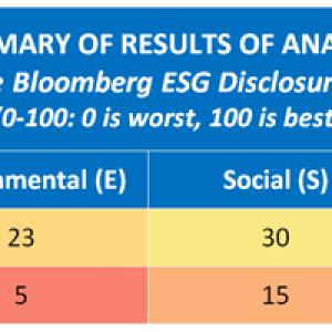 The average ESG Disclosure Score assigned by Bloomberg LP reflects the disclosure activities of companies related to their" E" (environmental), "S" (social/societal) and "G" (corporate governance) strategies, performance and related activities. (See attached Bloomberg Summary of Results of Analysis table.)