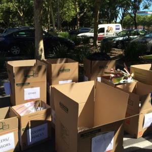 The sorted materials were donated to the Folsom Cordova Community Partnership to aid in their annual Backpack Drive which benefits students in Rancho Cordova who may not have direct access to school supplies.