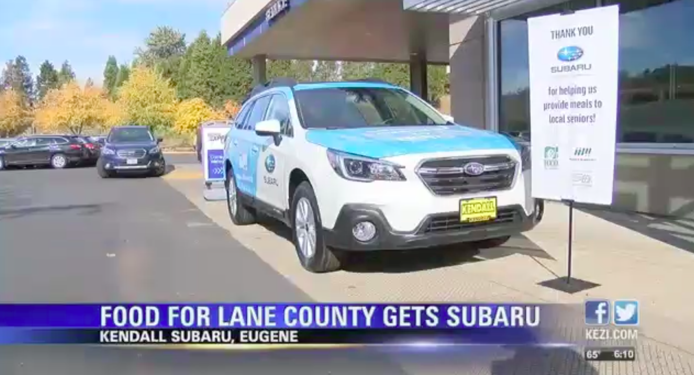 EUGENE, Ore.- FOOD for Lane County made its first delivery in a new Subaru Outback last month. The car was a gift from Subaru, part of their Subaru Loves to Help program. They donated 50 cars to Meals on Wheels programs across the country. FOOD For Lane County was the only chapter selected in Oregon. Subaru chose FOOD For Lane County based on the number of people a new car would help serve. It is expected to increase deliveries by 30 people per month, bringing the total monthly count to almost 500.