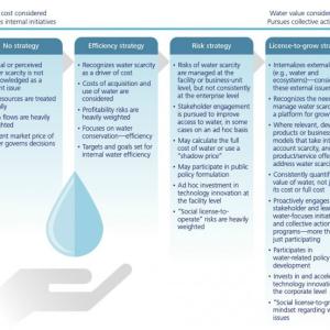 Companies whose operations and growth depend on water should also be aware of where they fall along the stages of maturity outlined above. Understanding where a company sits on the maturity model can help frame the steps needed to address water risk and to align its water strategy with its business growth strategy.