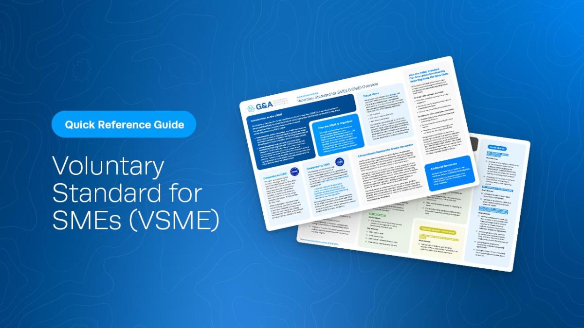 Coppola said, “The VSME helps ensure the reporting burden for SMEs is proportional to their size and capacity to provide ESG information. G&A is available to help companies with strategic planning to help navigate the evolving regulatory reporting requirements in Europe.”
