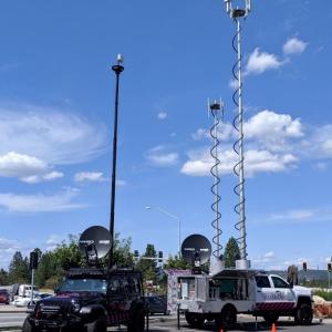 While both COWs and COLTs contain satellites and generators and have comparable technology capabilities, there are some physical distinctions. COWs look like a trailer and must be attached to a truck’s hitch in order to be transported, while a COLT’s satellite and generator are built directly into a truck. The advantage of a COLT is that our teams are able to drive them into some areas that may be too difficult or dangerous to tow a COW due to poor road or terrain conditions.