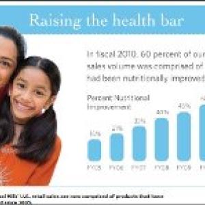 Raising the bar on health. This past fiscal year, General Mills achieved its largest one-year gain in product health improvements. The company improved the health profile of products comprising nearly 25 percent of its U.S. Retail sales volume in 2010.