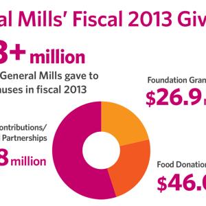 - Remarkable philanthropy: In fiscal 2013, General Mills donated more than $153 million (nearly $3 million a week) to key initiatives that support communities around the globe. General Mills and its Foundation have given more than$1 billion to charitable causes worldwide since 1954.