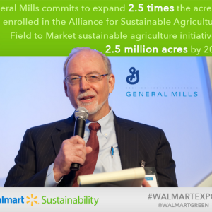 General Mills CEO Ken Powell participated in Walmart’s first ever Sustainable Product Expo and made a big announcement.