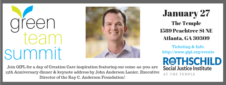 The Georgia Interfaith Power & Light Green Team Summit is only a few weeks away! John A. Lanier, executive director of the Ray C. Anderson Foundation is the keynote speaker. Come get inspired for your community of faith's Creation Care actions in 2019 through workshops such as How Islamic Teachings Inform Earth Care, What Does it Mean to be Jewish and Practice Environmental Stewardship?, EJ: Justice = Love for My Neighbor, and Youth Engagement: One More Generation. Youth, green teams, green organizations and all friends welcome.