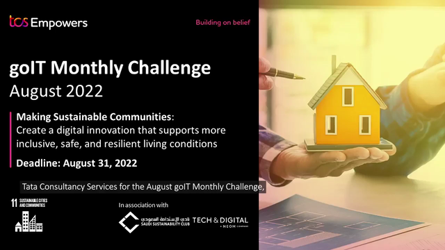 For the August Monthly Challenge, TCS has partnered with NEOM and the Saudi Sustainability Club to challenge students to create a digital innovation that supports more inclusive, safe, and resilient living conditions. NEOM is an initiative to create a city of the future in Saudi Arabia supported entirely by renewable and affordable energy, zero-waste water systems, and many more zero-carbon footprint innovations.