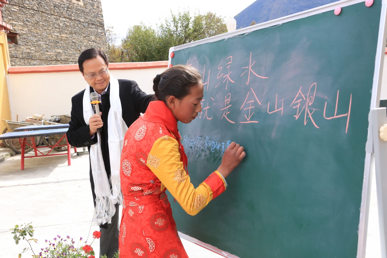 “Uncle Chan gave us a lecture on environmental protection. He told us ‘A scenic landscape opens up a world of natural treasures’,” Sonam Baizom recalls. “To help us memorise it, he asked us to teach him how to say it in Tibetan. I translated the line into Tibetan, wrote it down on the blackboard, and taught him how to say it. He repeated the line after me until he knew how to say it in Tibetan properly."