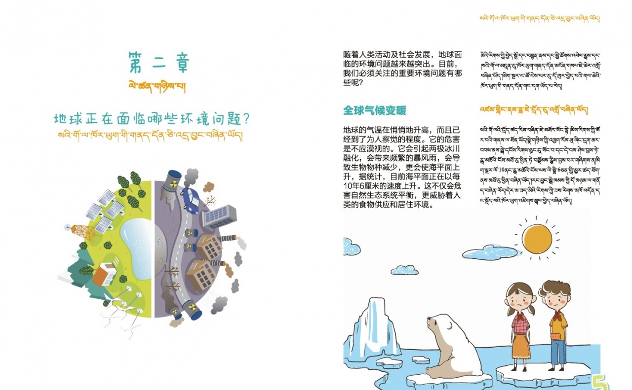 The book, handed out to students by colleagues from Jiangbian Hydro Power Station, is printed in Chinese and Tibetan, with lively illustrations to teach them about the environmental issues facing our planet, and what they should do to contribute to conservation on a day-to-day basis. SH says he hopes the book can help the students understand more about environmental protection and help preserve the Tibetan language and culture.
