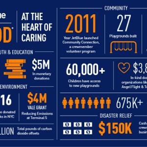 JetBlue For Good is JetBlue’s platform for social impact and corporate responsibility. JetBlue For Good challenges the airline’s crewmembers to serve their communities through acts of volunteerism and recognizes crewmembers who embody the brand’s credo to Inspire Humanity. The platform aligns JetBlue’s corporate giving with crewmember’s personal passions. JetBlue For Good rewards JetBlue’s 22,000+ crewmembers for their community service both individually and on a team basis.
