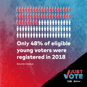 This year, young people have more sway than ever. Research shows that more than a third of eligible voters are Gen Z or Millennials, and 83% of people 18-29 believe they have the power to change the country and the world. But only 60% are planning to vote. In fact across the board, voter registration numbers are down as a result of the COVID-19 pandemic. According to a recent study, in 11 states the number of new voters in April of 2020 decreased by 70% as compared to April 2016. Other states are down as much as 50% over the same period.