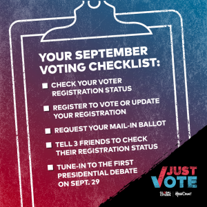 Just Vote is also teaming up with corporate and foundation partners to expand the campaign’s reach and impact. Corporate partners include Cisco and Procter & Gamble and foundation partners include Wallace Global Fund. As part of the campaign, these partners are giving their employees resources, and time off to vote and participate in November’s election.