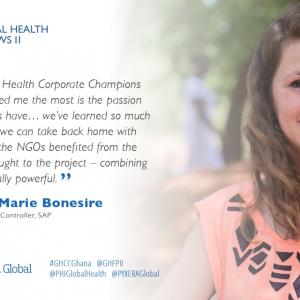While the ability to build global leadership talent through pro bono service is an attractive win-win, the opportunity to work with other companies is also important.  "Collaboration is the key,” said Alexandra van der Ploeg, Head of Corporate Social Responsibility at SAP. “It’s the key to the way we work together at SAP.  It’s key in the way we work with our clients. And it’s key to helping the world run better through our Social Sabbatical, through which we have long experience collaborating with non-profits and social enterprise.  The Global Health Corporate Champions takes that one step further, because here we also have the opportunity to partner with professionals from like-minded companies, and the combination of our collective expertise and experience has proven to be quite valuable.  We learn together, as we serve."