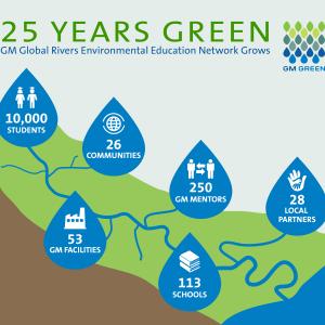Through GM GREEN, employees mentor approximately 10,000 students each year in water monitoring events, classroom visits and student-driven watershed improvement projects. Students retrieve, test and analyze water samples, then channel findings into a sustainable action plan addressing water quality issues locally.