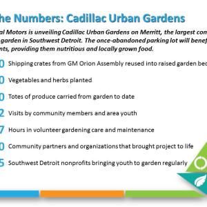 (3BL Media) Detroit - August 1, 2012 - General Motors is unveiling Cadillac Urban Gardens on Merritt, a community project where 250 shipping crates from Orion Assembly — home of the Buick Verano and Chevrolet Sonic — are converted into raised garden beds.