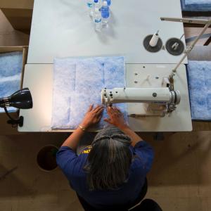 GM supplier Filtration Services Group involved the N.E.W. Life Center in Flint to make air filter panels from the 9,000 square feet of fleece created since Do Your Part launched in April. After at-risk individuals participate in programs dedicated to employment preparation or life change, this nonprofit training center employs them to further develop their skills.